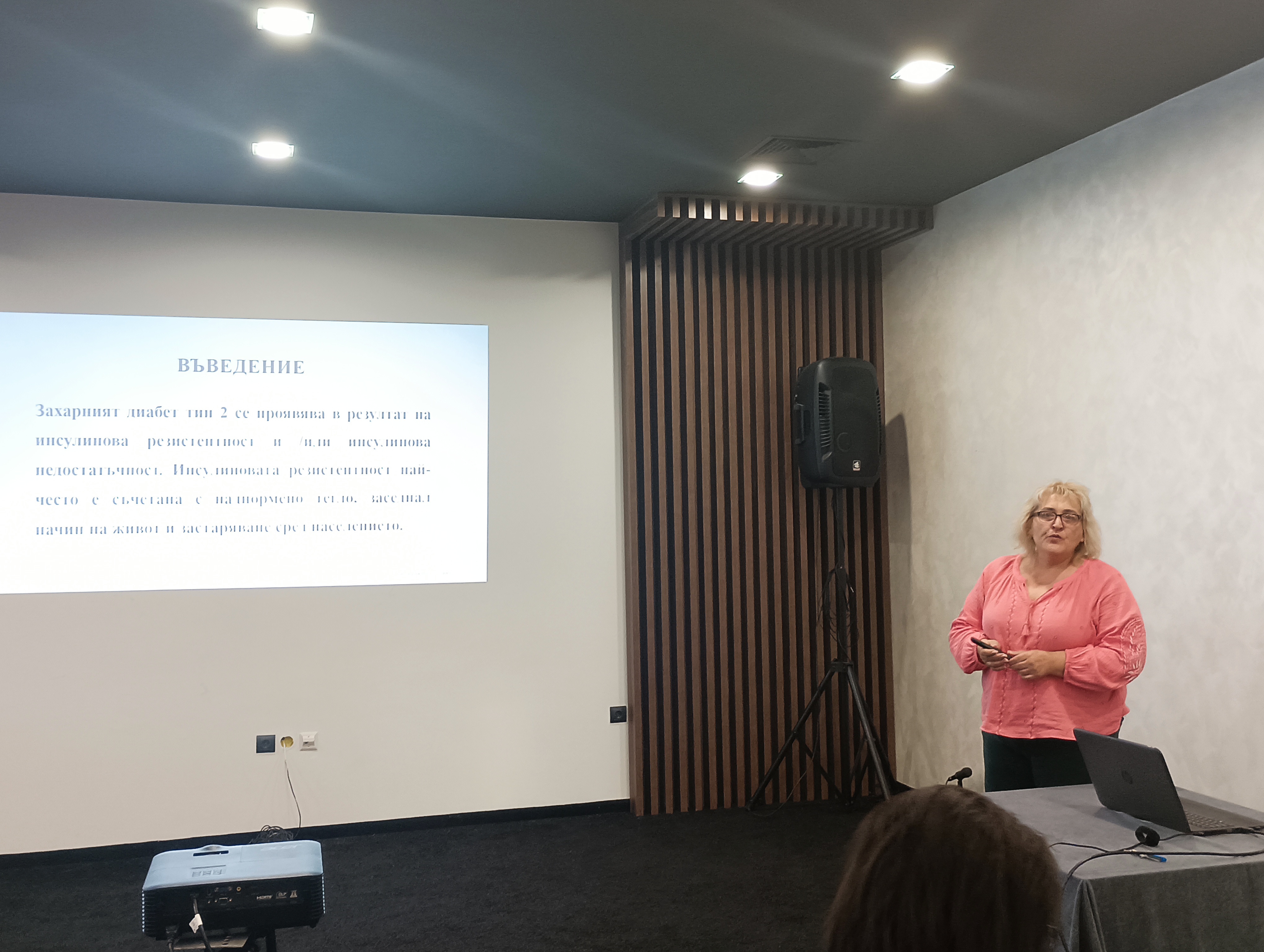 Сред останалите лектори участие взе и ас. Мирослава Илиева от катедра „Здравни грижи", Русенски университет „Ангел Кънчев" с презентация на тема „Двойна диагноза: злоупотреба с вещества и психично здраве"