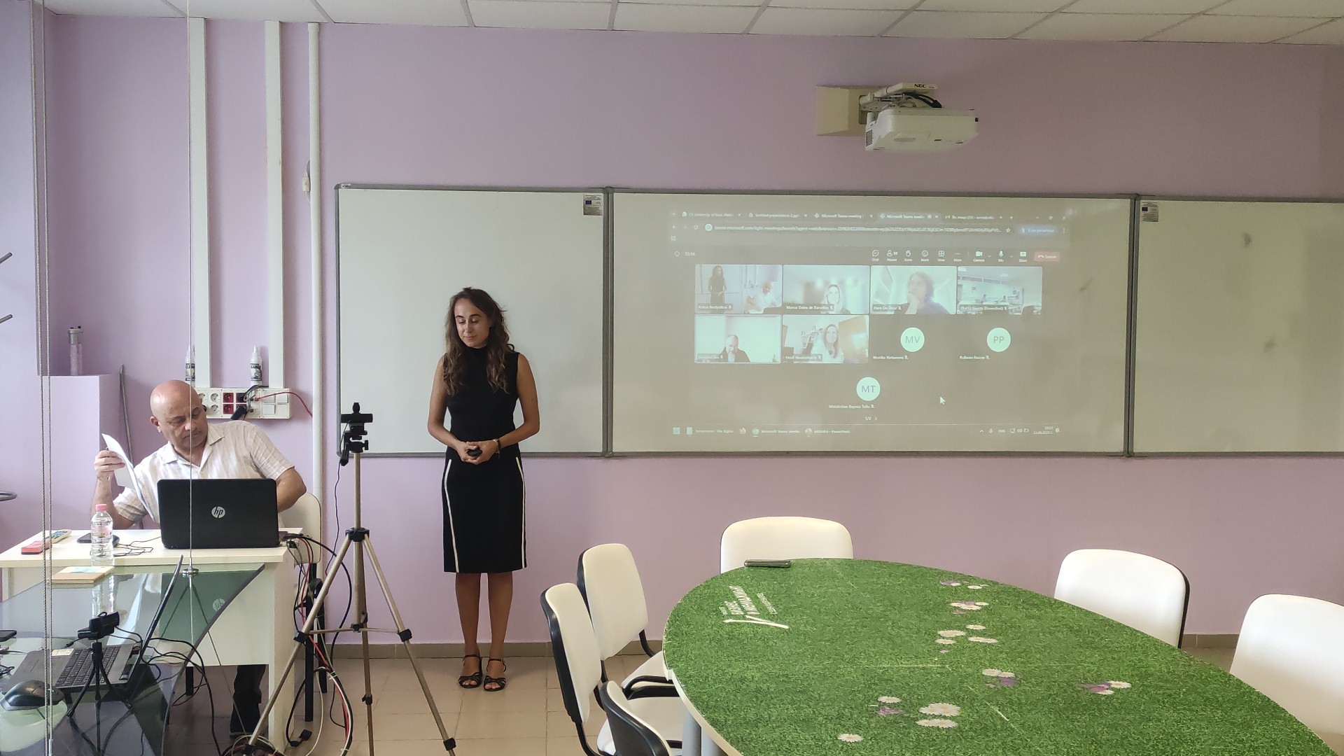 Participants in the meeting, on behalf of the university of Ruse were : Associate Professor Galina Ivanova, PhD - Deputy Rector for International Cooperation, Associate Professor Tsvetelina Harakchiyska , PhD - Deputy Dean of the Faculty of Natural Sciences and Education, Professor Ivan Beloev, PhD - head of the Continuing Education Centre, Professor Juliana Popova, PhD, Associate Professor Orlin Petrov , PhD - Head of the Academic Staff Development Department , Doctor Victoria Ivanova - Director of the University Library and Professor Valentina Voynohovska, PhD - responsible for the tasks from the work program for the implementation of the project.