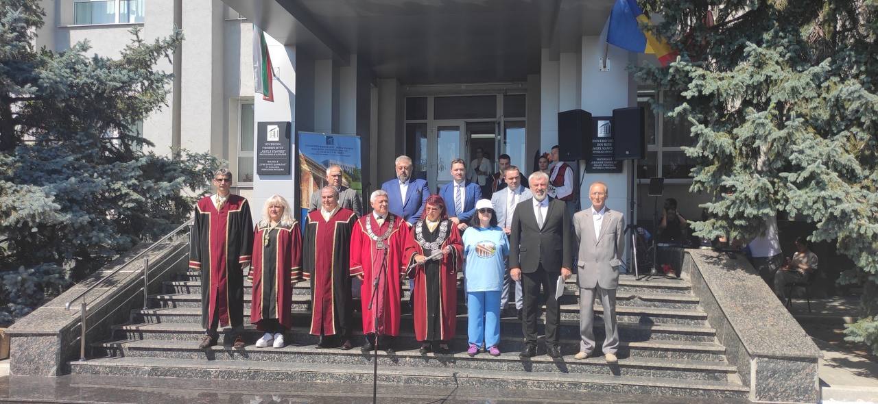 On behalf of the management and academic community of the higher education institution, the ceremony was also attended by: the Chairman of the General Assembly and Honourary Rector of the University of Ruse, Academician Hristo Beloev, DscEng, the Vice-Rector for Academic Affairs, Professor Teodor Iliev, PhD , the Vice-Rector for International Cooperation, Associate Professor Galina Ivanova, PhD and the Vice-Rector for Research Professor, Daniel Bratanov, PhD, deans of faculties, members of the Academic Council and students.