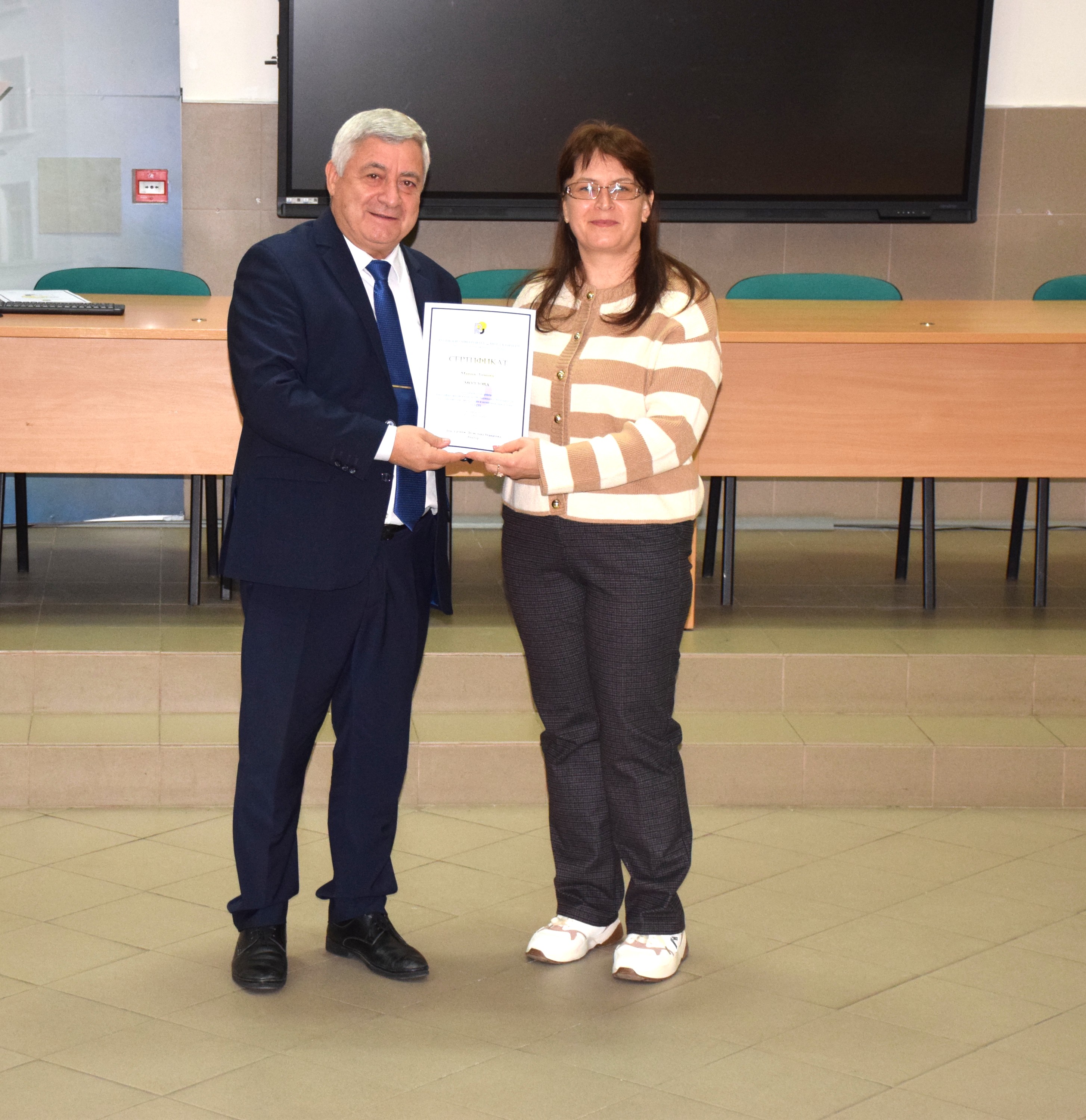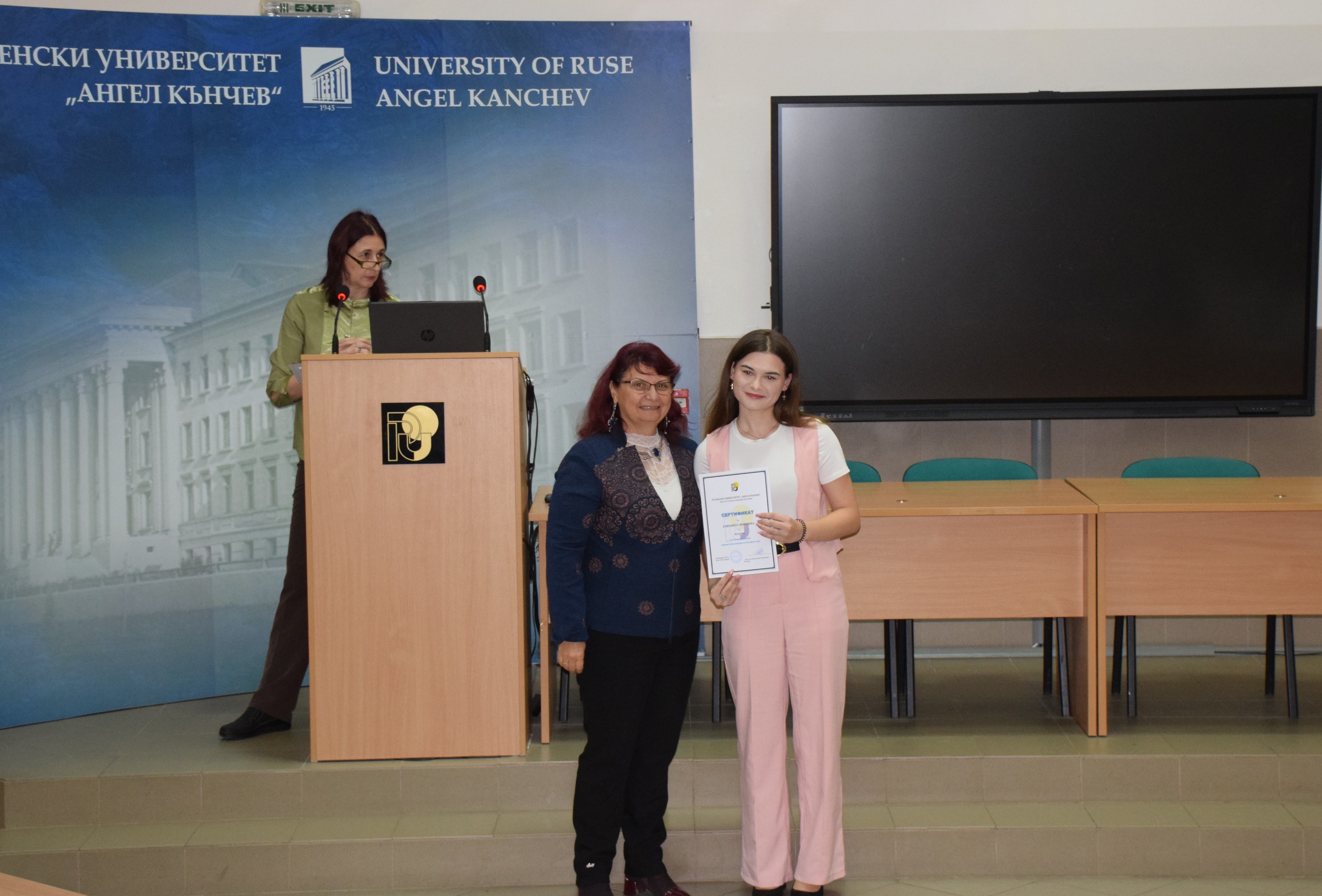 The certificates were presented to the teachers by Academician Hristo Beloe, DscEng - Honourary Rector and Chairman of the General Assembly of the University of Ruse, and the Rector of the University of Ruse, Associate Professor Desislava Atanasova, PhD handed out the certificates to the students. The event was attended by lecturers from the departments of "Bulgarian Language, Literature, History and Arts" and "Foreign Languages".