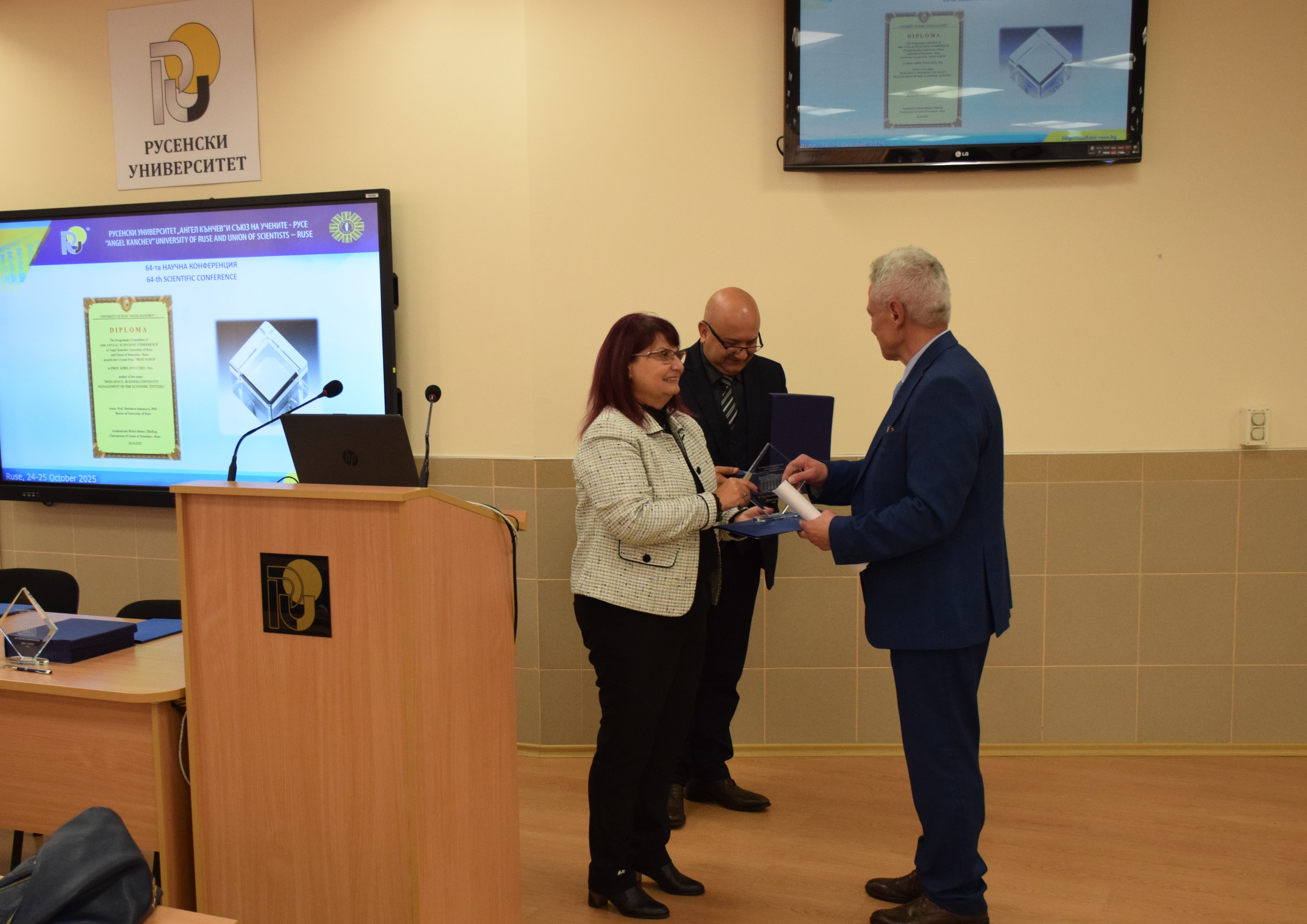 The plenary speakers were awarded a Crystal Prize and a diploma from the rector's office of the University of Ruse for their work.