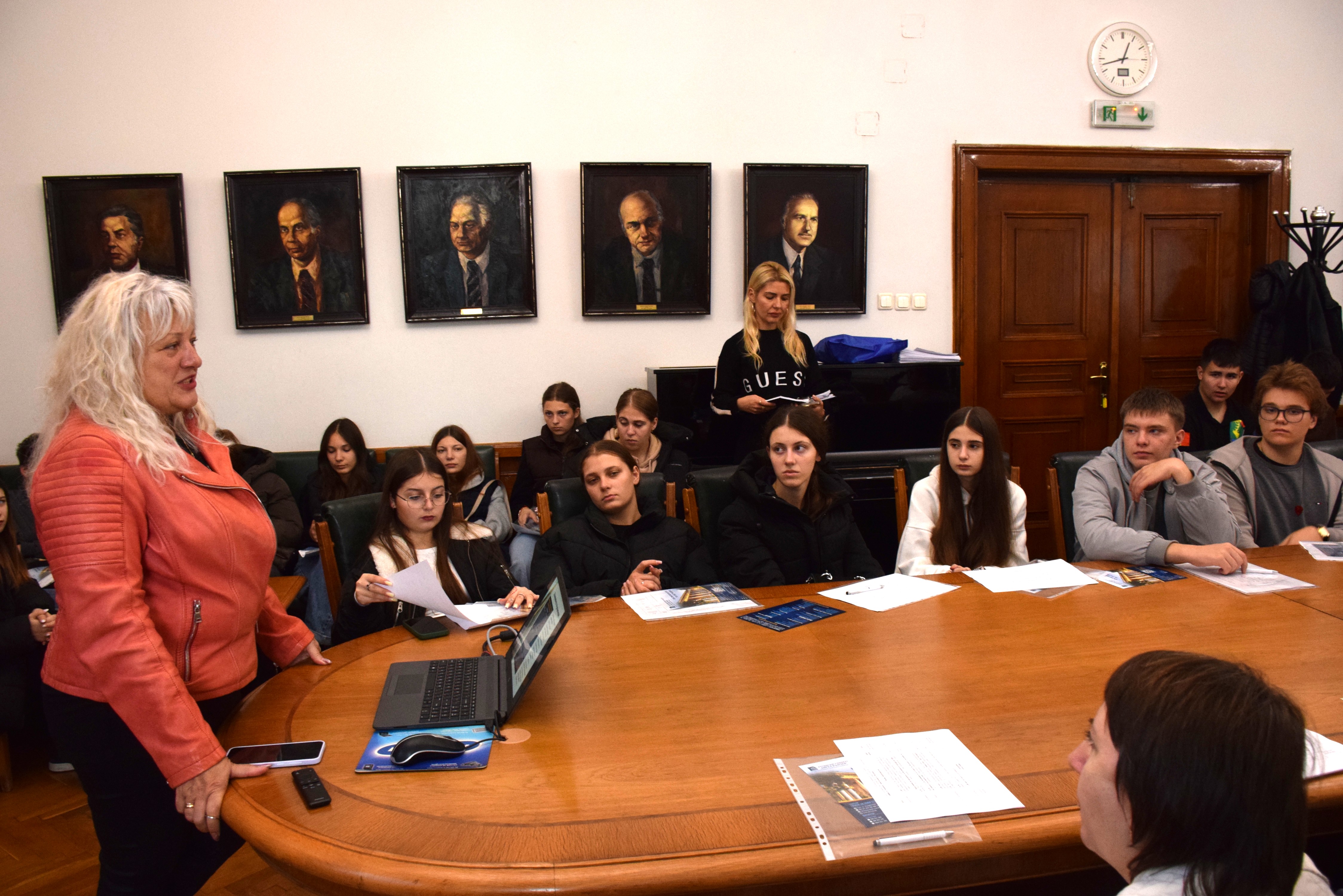 The group was welcomed in the Conference Hall of the Rectorate by the Rector of the University of Ruse, Assoc. Prof. Desislava Atanasova, PhD and Academician Hristo Beloev, DscEng - Honourary Rector and Chairman of the General Assembly of the University. They welcomed them with a "Welcome" to the University of Ruse and to the beautiful city of Ruse!