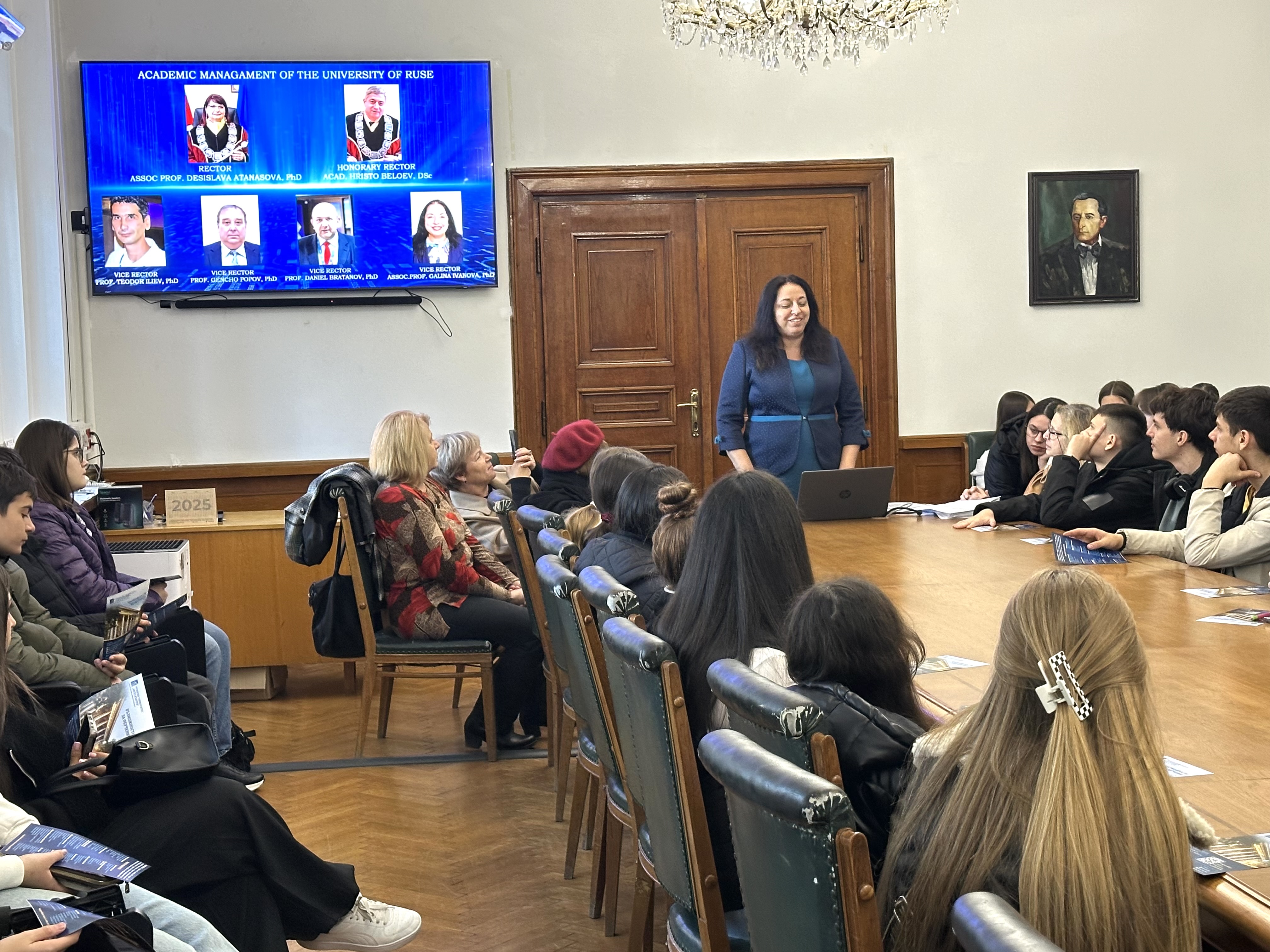 The Vice-Rector for International Cooperation, Assoc. Prof. Galina Ivanova, PhD introduced them to the modern educational facilities, the structure of the university, and the opportunities that the University of Ruse offers its students.