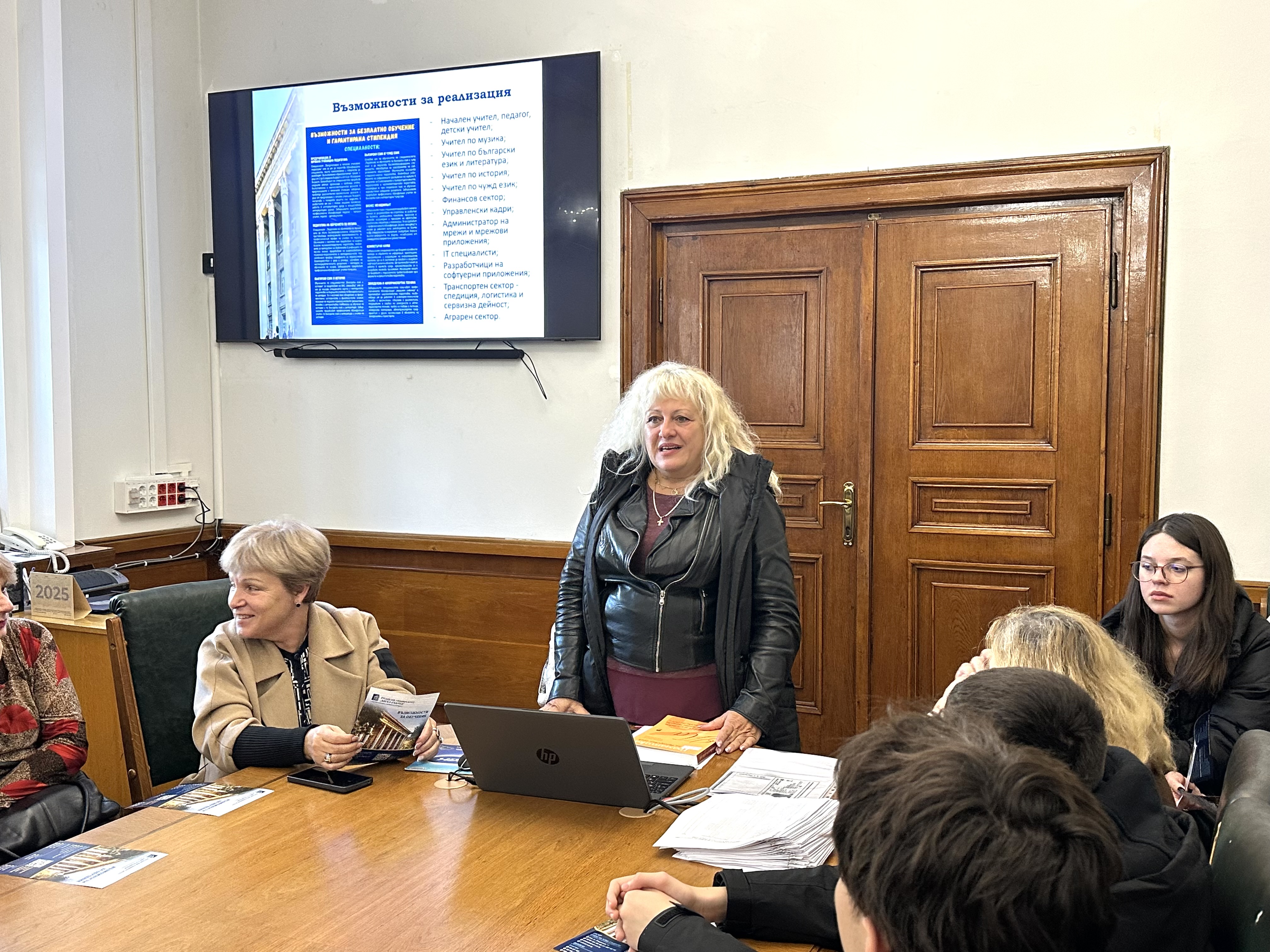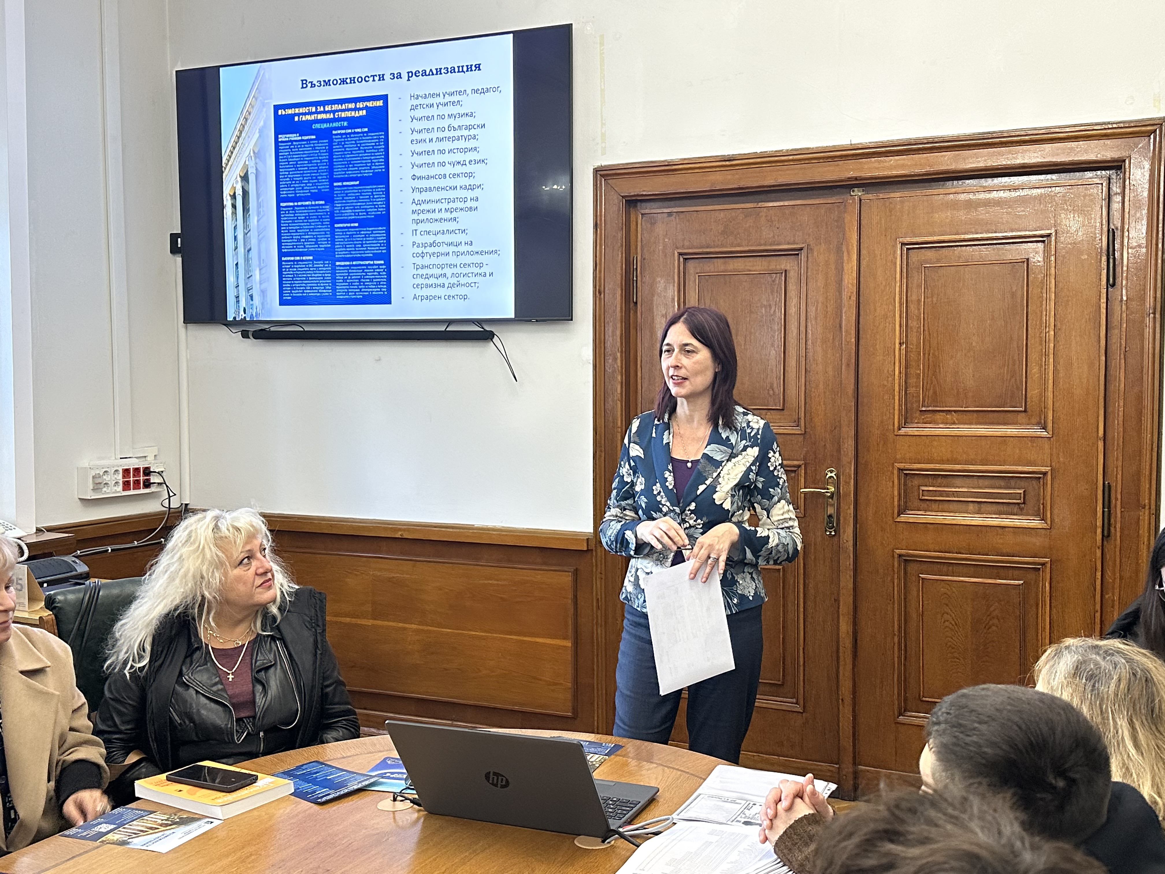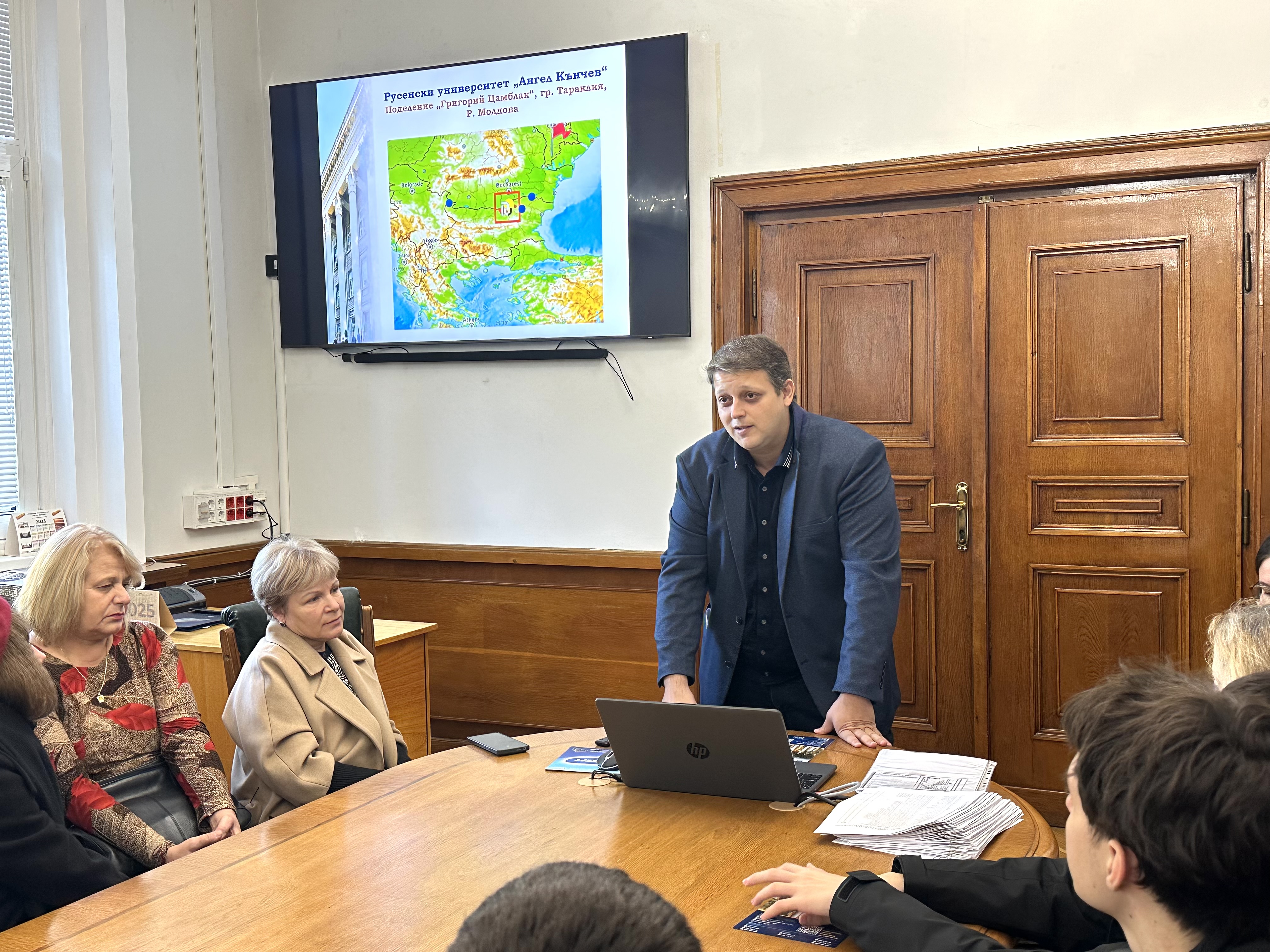 Assoc. Prof. Boris Kostov, PhD – Head of the Student Admissions Department introduced the students to the opportunities for study and Erasmus mobility at the University of Ruse, and Assoc. Prof. Valentina Vasileva, PhD – Director of the branch in Taraclia "Grigoriy Tsamblak", Moldova presented the spectrum of specialties and the conditions provided for training in this first branch of a Bulgarian higher education institution abroad.